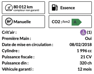 - Puissance fiscale : 21 CV - Puissance DIN : 320 ch